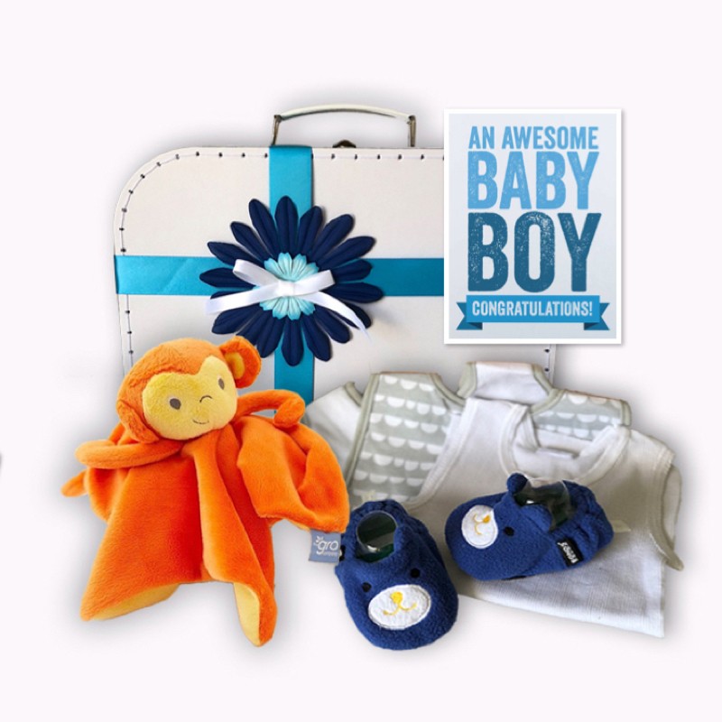 This gorgeous Monkey Boy hamper will make the perfect Baby Shower, Christening, Maternity Leave or Welcome to the World gift for a precious baby boy.