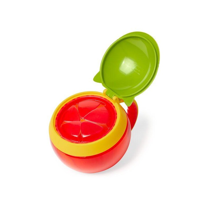 Perfect for toting munchies, this cute cup encourages independent snacking without the mess. The easy-grip handle is sized just right for little hands, and the snap top lid ensures food stays fresh. The flexible inside opening keeps snacks from spilling out even if it's tipped over. With two lids there's less mess and mum's bag stays crumb-free!